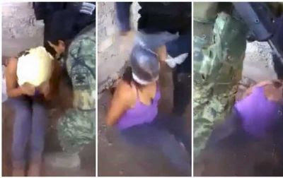 Desde anoche comenzó a circular en redes sociales un video donde se observa a personal militar y a un presunto policía federal agraviando a la mujer, a la que en varias ocasiones le colocan una bolsa de plástico en la cabeza.